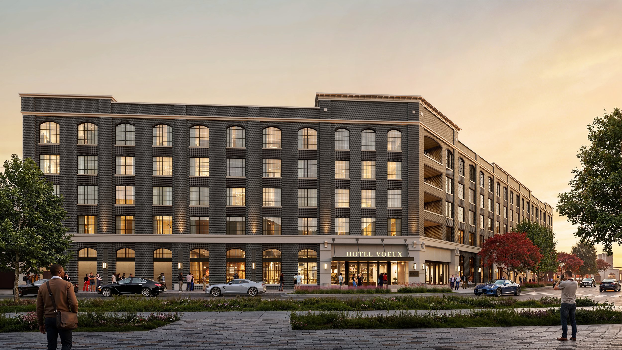 Hotel Voeux is a design-forward boutique hotel conceived as the hospitality anchor of Firefly Park, blending French sophistication with the contemporary Texas lifestyle. Organized around a central courtyard, the hotel evokes the intimacy of a Parisian neighborhood—lush greenery, trellises, and shaded cabanas encircle a resort-style pool, creating a layered, immersive arrival experience. The property features a signature restaurant, bar and lounge, fitness center, and thoughtfully integrated ballroom and meeting spaces, positioning it as both a social destination and a hub for business and events